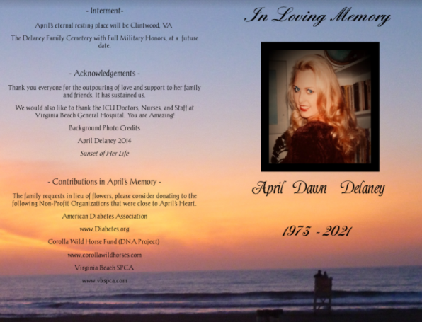 April Delaney, 48, passed away on September 29, 2021. Her friends and family will miss her dearly.