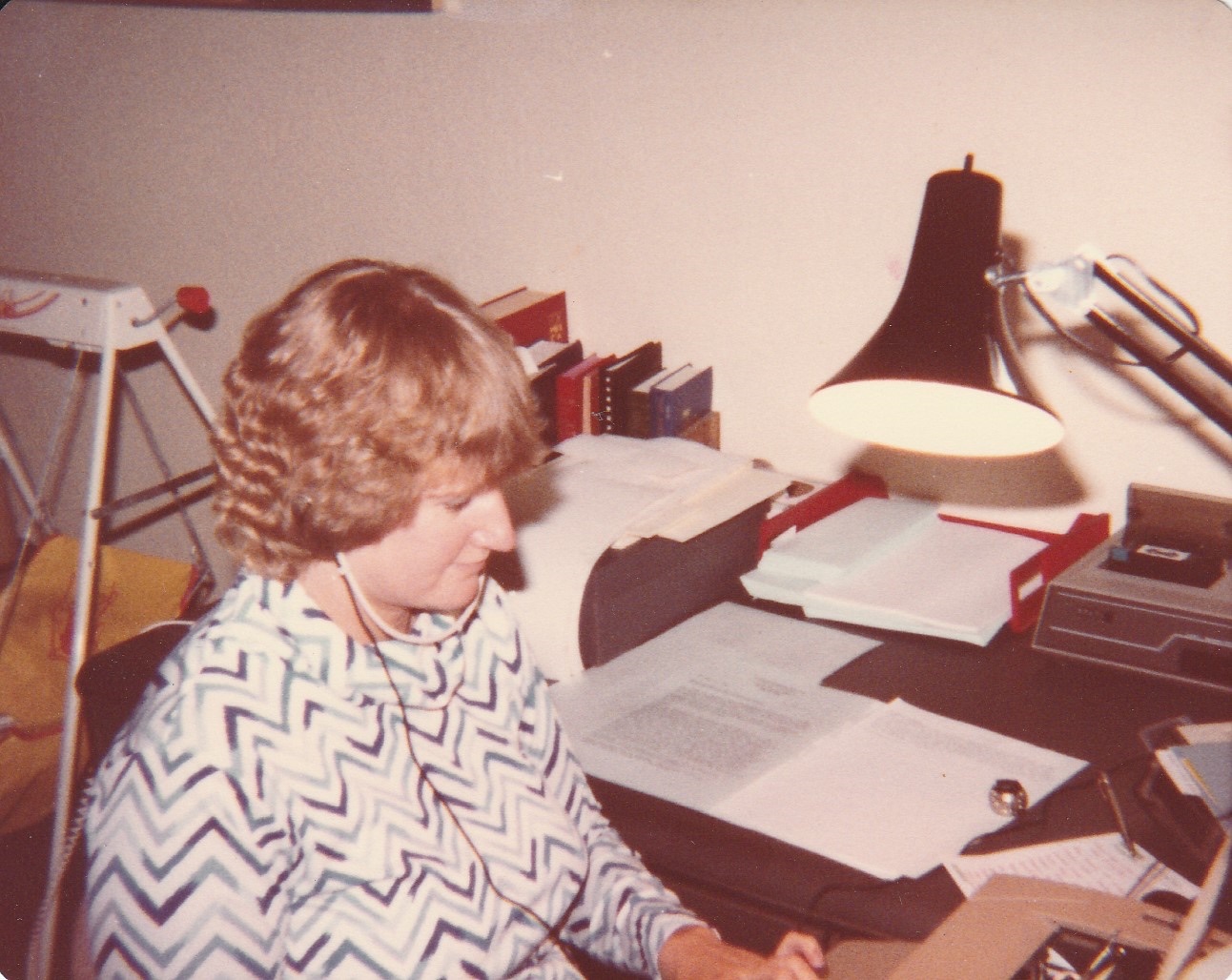 The sound of her typing at extraordinary speed filled their home, sometimes at odd hours if her duties as a mother took precedent during the day. Her children often returned home from school to find her at the kitchen table or on the living room couch, finished with her work and eager to hear about their day. A quiet, supportive listener, she cared enough to be present for her daughters.